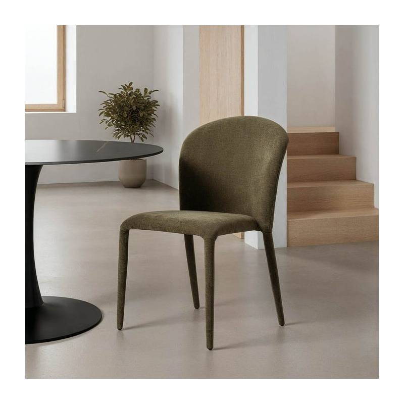 ROOM – tai moderni ir patogi valgomojo kėdė, sukurta tiek kasdieniam naudojimui, tiek jaukioms vakarienėms su svečiais. Minkštas žalias audinys suteikia kėdei jaukumo ir spalvinės gyvybės, o tvirtas metalinis rėmas užtikrina stabilumą bei ilgaamžiškumą.