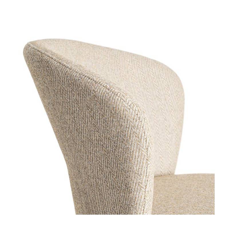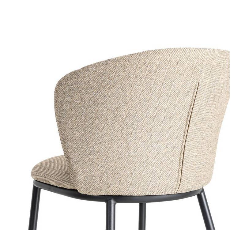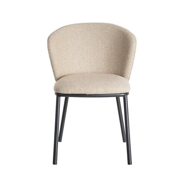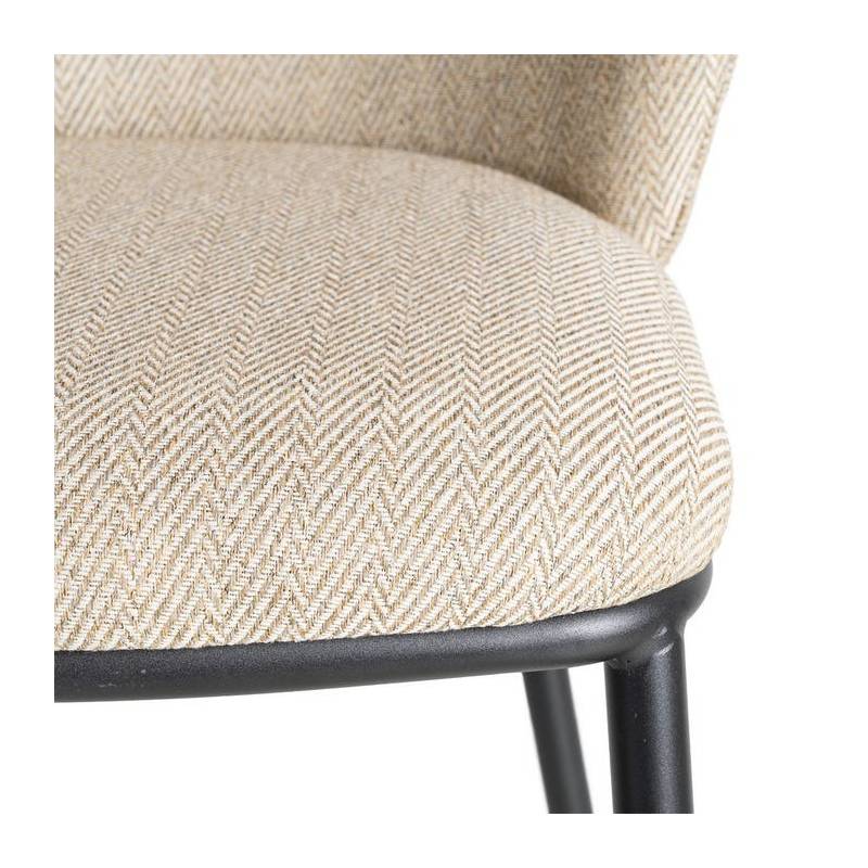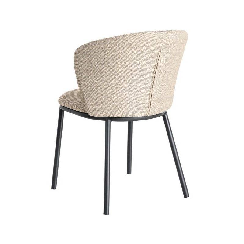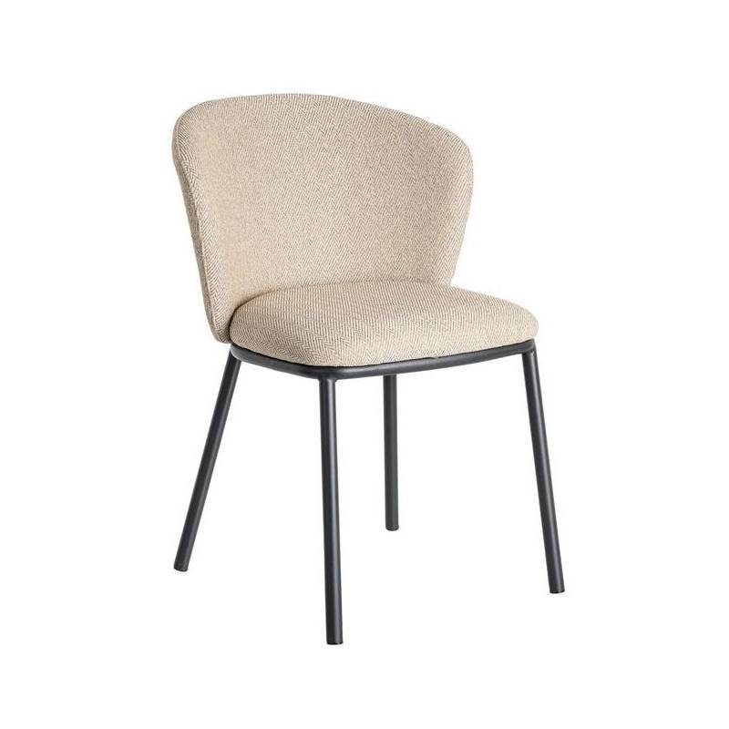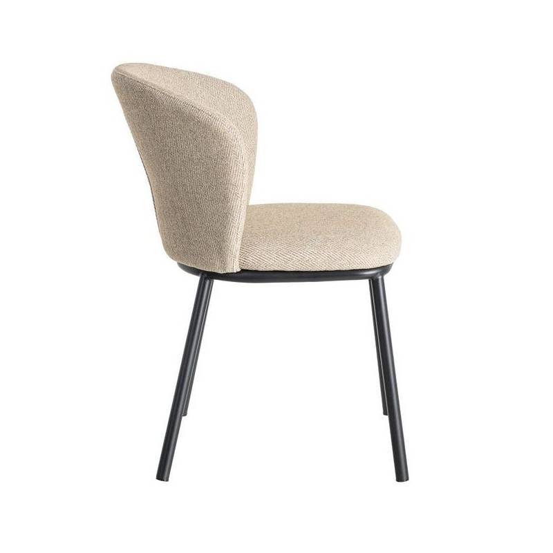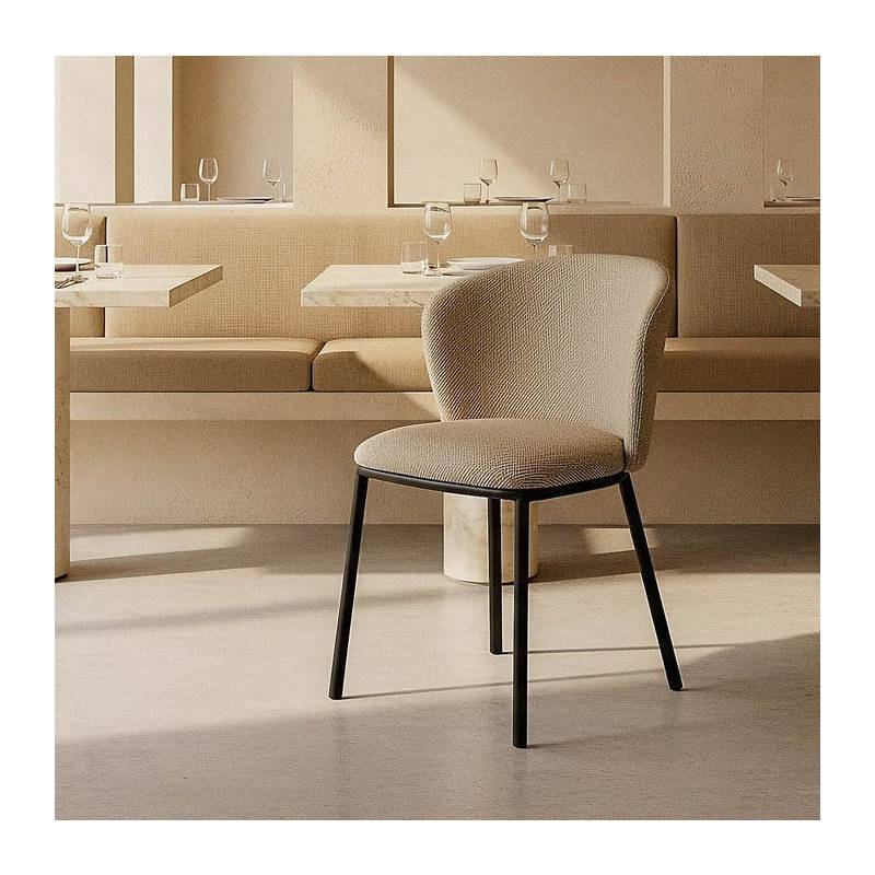 Smėlio spalvos valgomojo kėdė su audinio apmušalu ir metaliniu rėmu – patogi, elegantiška ir puikiai tinkanti moderniam interjerui.