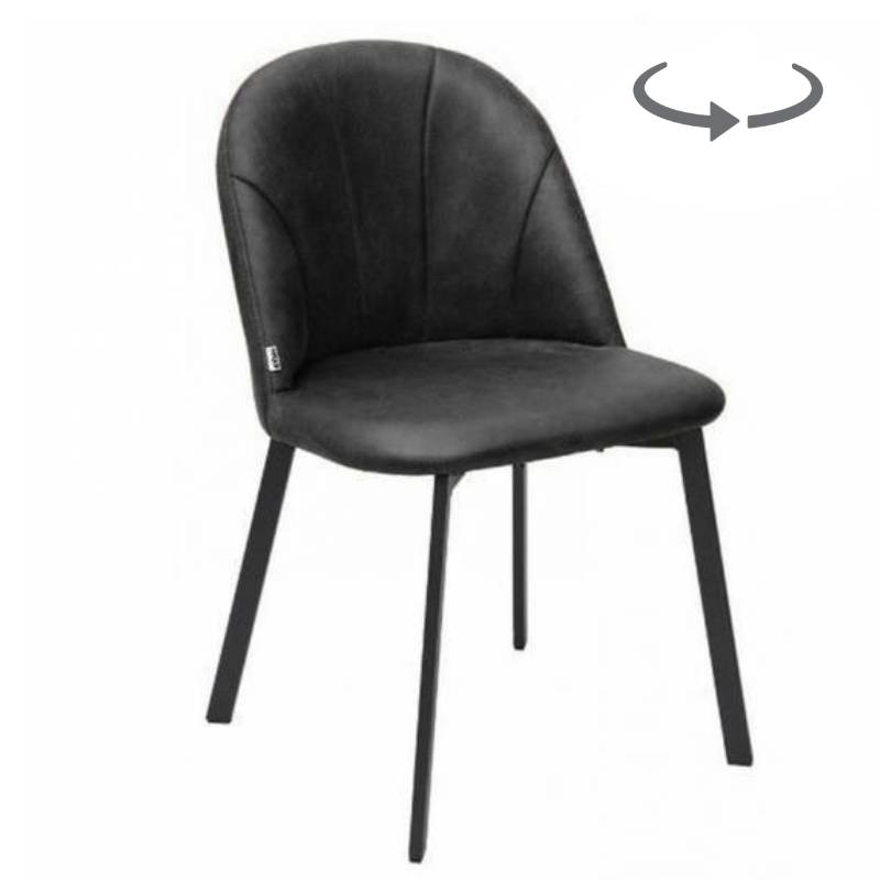 Moderni valgomojo kėdė iš dirbtinės odos su juodomis metalinėmis kojomis ir 360° sukimosi funkcija. Stilinga ir lengvai derinama prie įvairių interjerų.