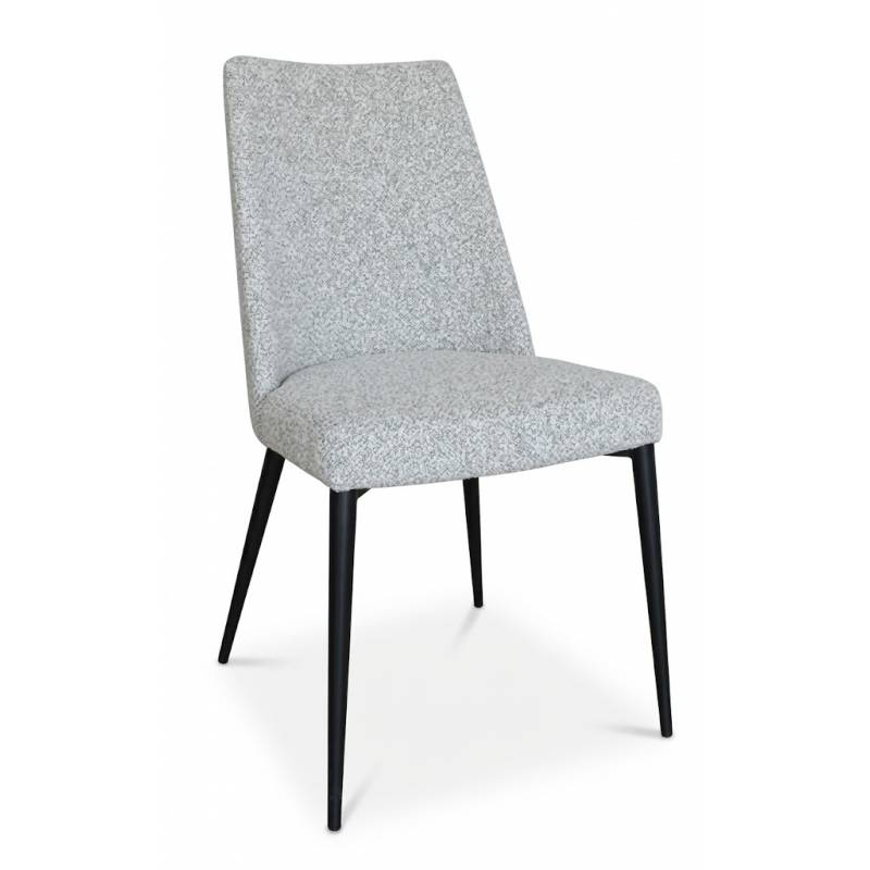 Moderni ir patogi kėdė su minkštu audiniu ir juodomis kojomis, suteikianti interjerui elegancijos ir kasdienio komforto.
