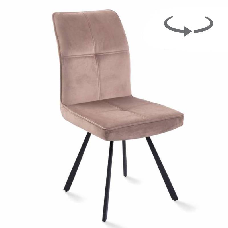 Valgomojo kėdė su juodai dažytomis metalinėmis kojelėmis ir veliūru apmušta sėdimąja dalimi. Ši kėdė turi sukimosi funkciją - iki 180° su grįžtamuoju mechanizmu. Tai taip pat galima naudoti kaip rašomojo stalo kėdę.