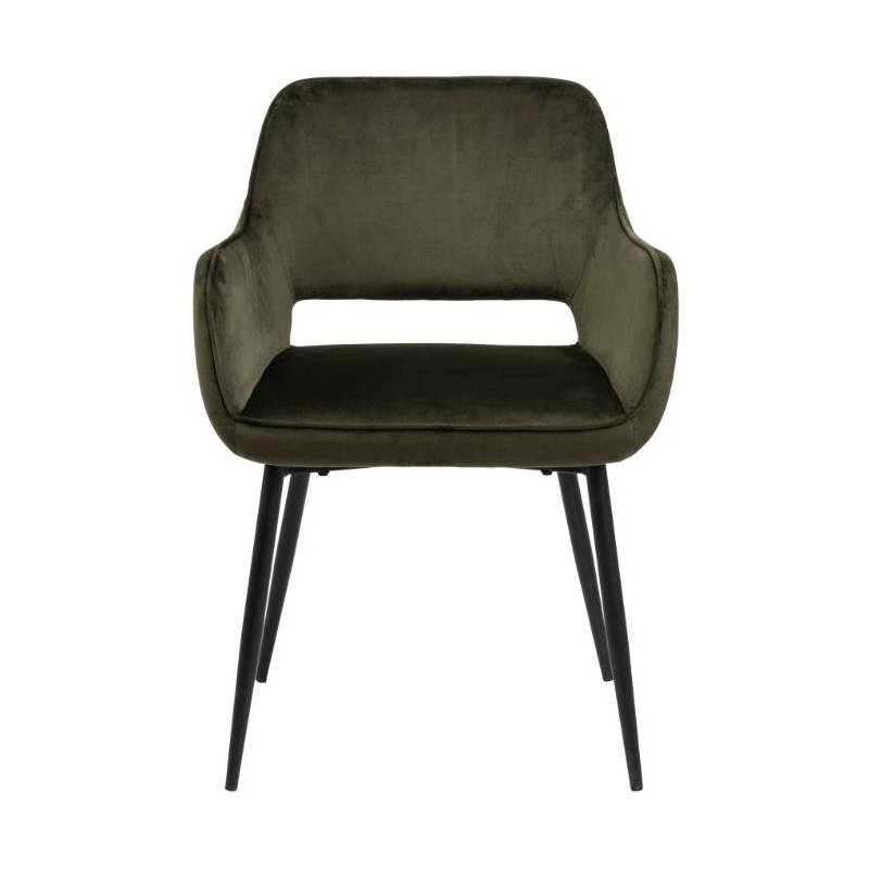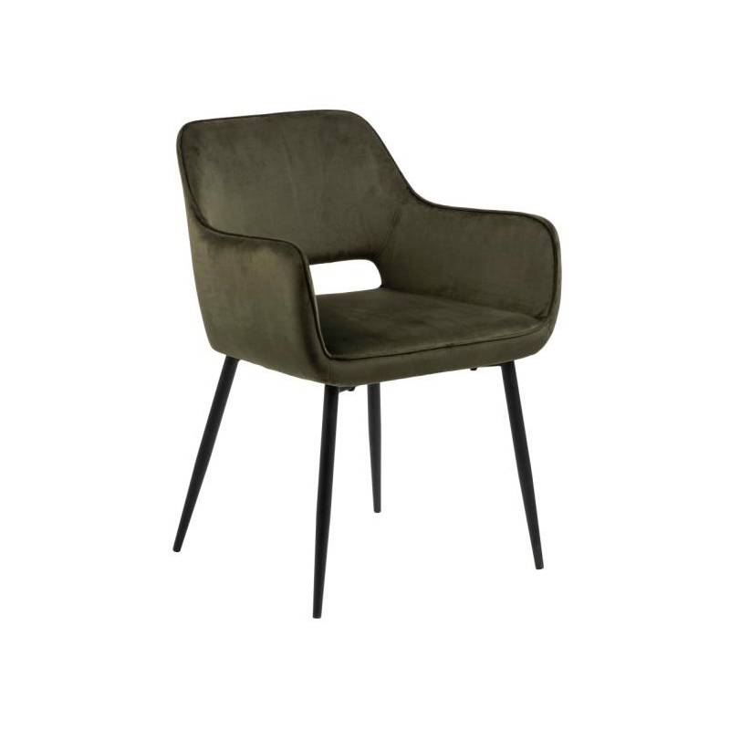 Krėsliukas aptrauktas veliūro audiniu, su metalinėmis milteliniu būdu dažytomis, juodomis kojomis, turi patogius porankius, kurie leis patogiai įsitaisyti, o krėsliuko nugarėlė leis komfortiškai atpalaiduoti nugarą.