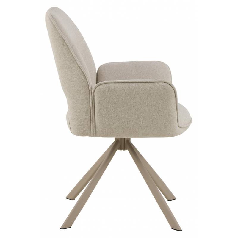 Sukimosi funkcija užtikrina patogų judėjimą, o stabilus metalinis pagrindas suteikia tvirtumo. Tai puikus pasirinkimas moderniam valgomojo interjerui, kuriame svarbus komfortas ir estetika.