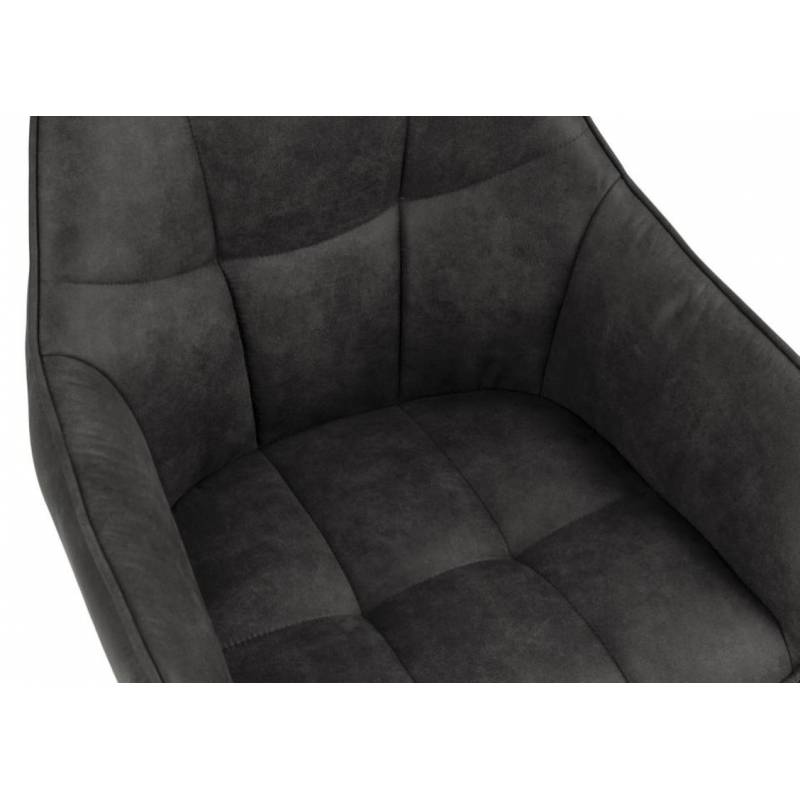 Valgomojo kėdė su porankiais sukurta derinant modernų dizainą ir aukštą komforto lygį. Minkštas antracito spalvos mikropluošto apmušalas su kvadratinio rašto siūlėmis suteikia kėdei išraiškingumo ir subtilaus industrinio charakterio. Speciali audinio danga sukuria šiek tiek grubią, vizualiai įdomią tekstūrą, kuri puikiai dera šiuolaikiniuose interjeruose.