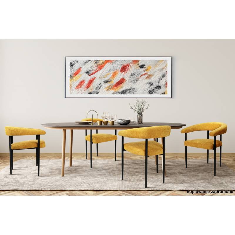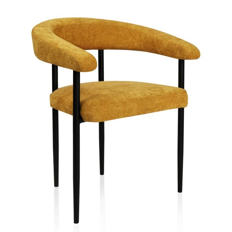 Modernaus industrinio stiliaus kėdė su apmušta sėdyne ir žemu, lenktu atlošu. Išskirtinė forma ir juodas metalinis rėmas suteikia interjerui charakterio, todėl kėdė puikiai tinka ne tik namams, bet ir restoranams, kavinėms, viešbučiams ar biurams. Ergonomiškai suformuotas atlošas bei 48 cm aukščio sėdimoji dalis užtikrina komfortą net ilgesnio sėdėjimo metu.