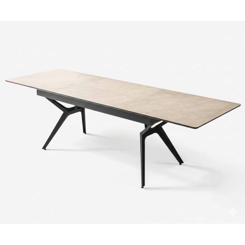 Išskleidžiamas stalas EFSUN su atspariu HPL stalviršiu ir rudomis, metalinėmis kojelėmis. Yra galimybė išskleisti iki 220 arba 260. Galima susėsti iki 14 asmenų. Galima pasirinkti kojelių spalvą ir stalviršio spalvą, matomą paskutinėje nuotraukoje.