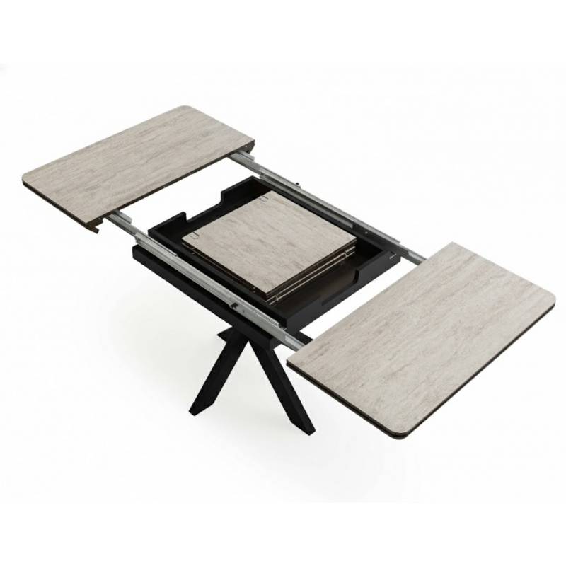 Išskleidžiamas stalas GRANDE 90(180)x90 travertin/ juoda koja