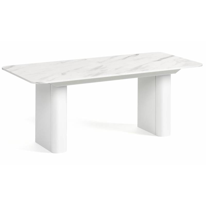 Išskleidžiamas stalas HOMER 200(296)x90 marble bianco/ baltos kojos
