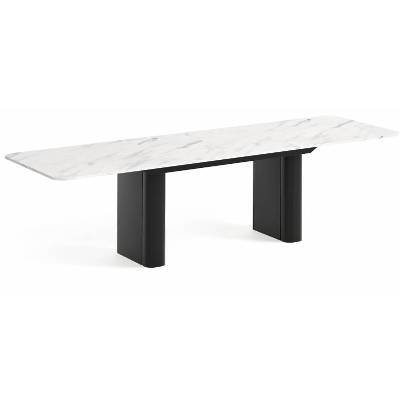 Išskleidžiamas stalas HOMER 200(296)x90 marble bianco/ juodos kojos