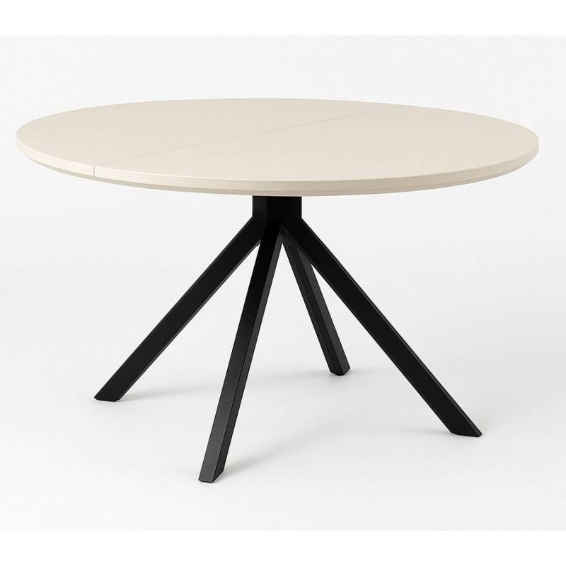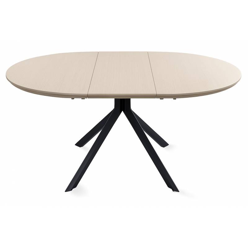 Išskleidžiamas valgomojo stalas LAGOS su cappuccino spalvos medžio stalviršiu ir juodomis kojomis – elegantiškas ir praktiškas pasirinkimas.