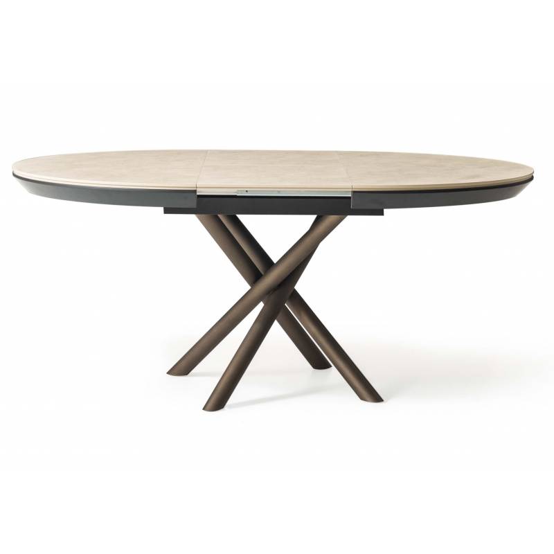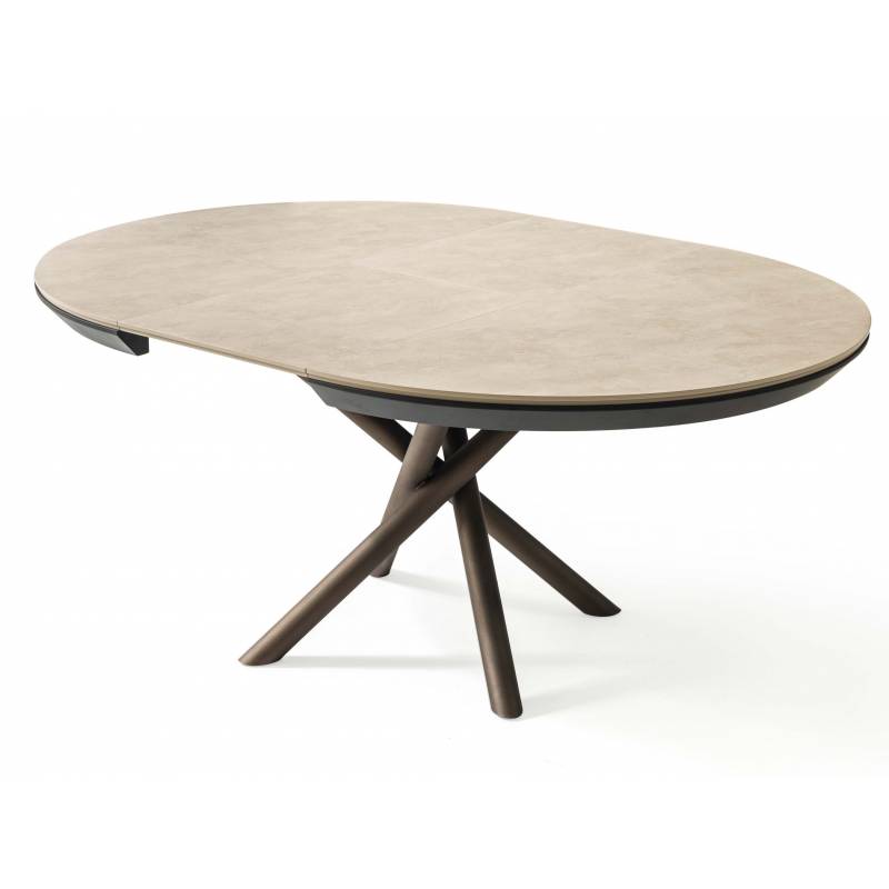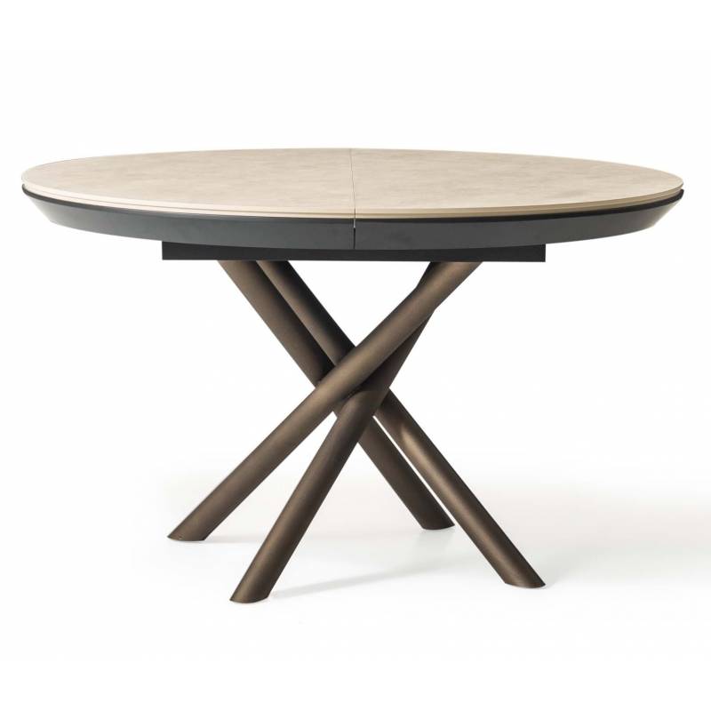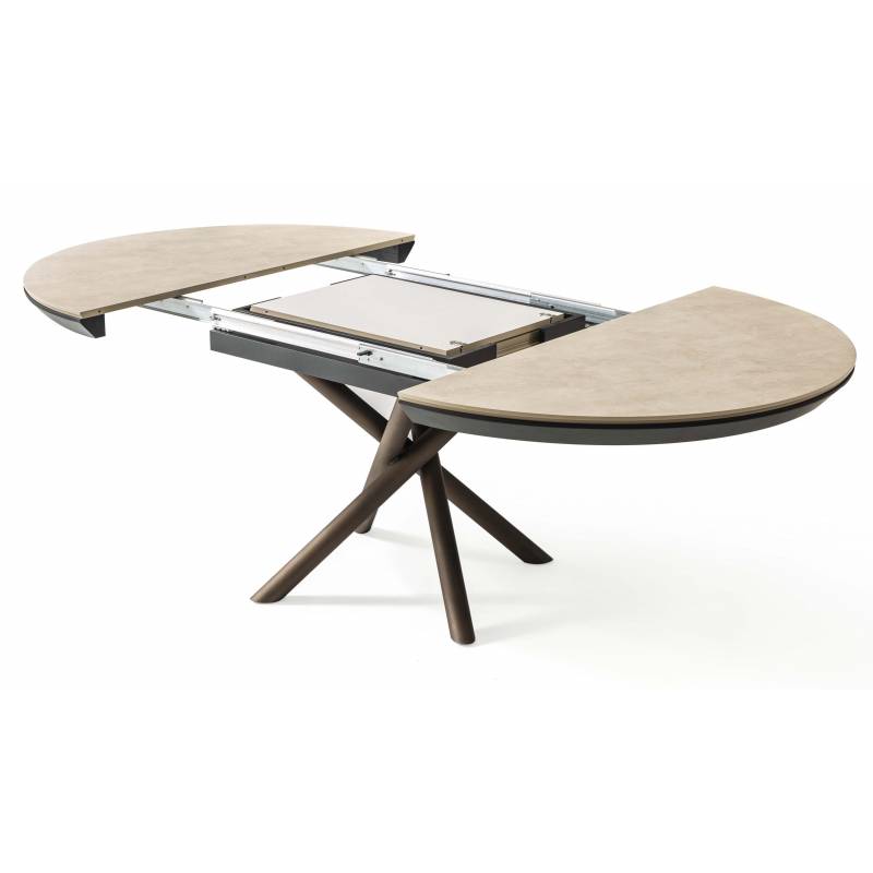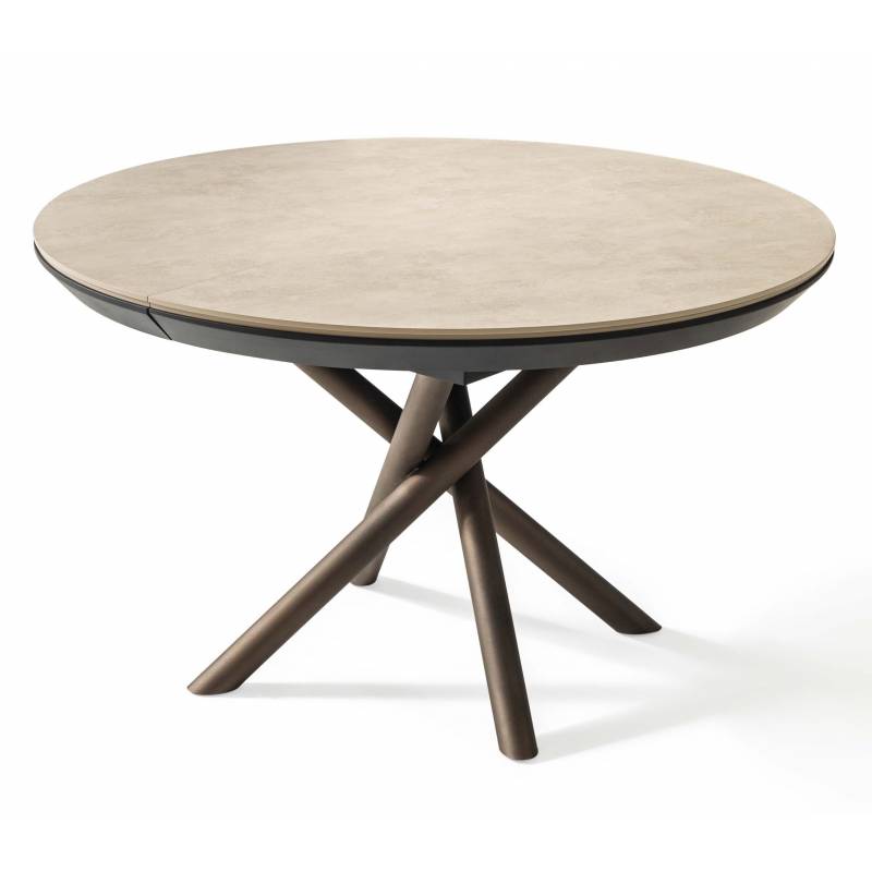 Išskleidžiamas stalas OCEAN Ø120(163) light beton/ rudos kojos