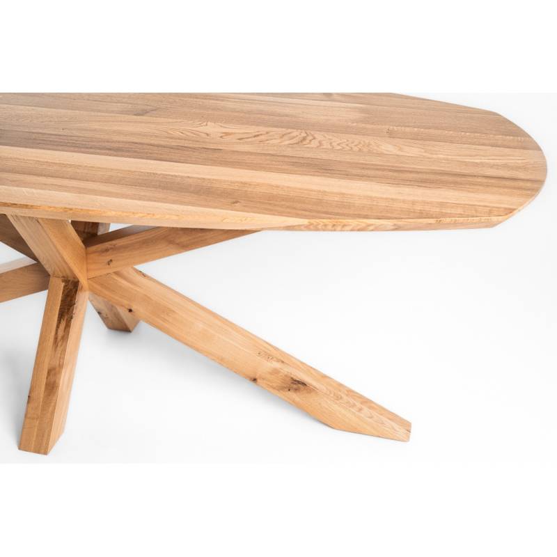 TANGO valgomojo stalas žavi savo forma ir medžiagiškumu – tai harmoningas natūralaus ąžuolo tvirtumo ir meninės konstrukcijos derinys. Stalviršis, pagamintas iš masyvo ąžuolo, išryškina subtilų medienos raštą ir natūralų atspalvį, kuris suteikia interjerui šilumos, ramybės ir natūralios harmonijos.