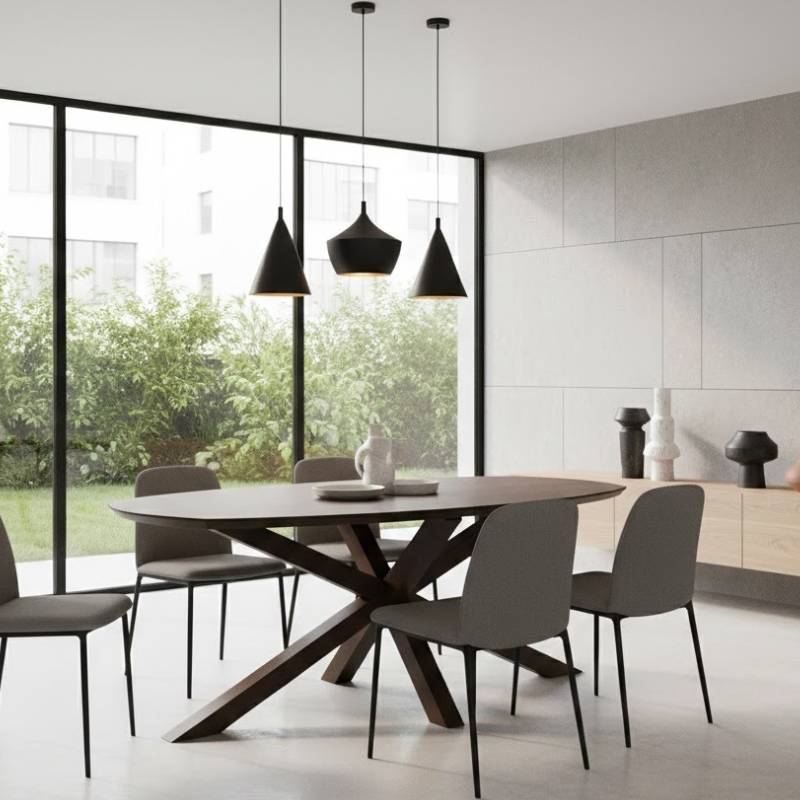 Skulptūriška medinė bazė su persikertančiomis kojomis kuria vizualinio lengvumo ir dinamiškos pusiausvyros įspūdį. Kiekviena detalė apgalvota taip, kad stalas būtų ne tik funkcionalus baldas, bet ir dekoratyvus interjero akcentas. TANGO sujungia meistrystę, tvirtumą ir laikui nepavaldų dizainą, tapdamas erdvės centru, kuriame susitinka estetika ir kasdienis gyvenimas.