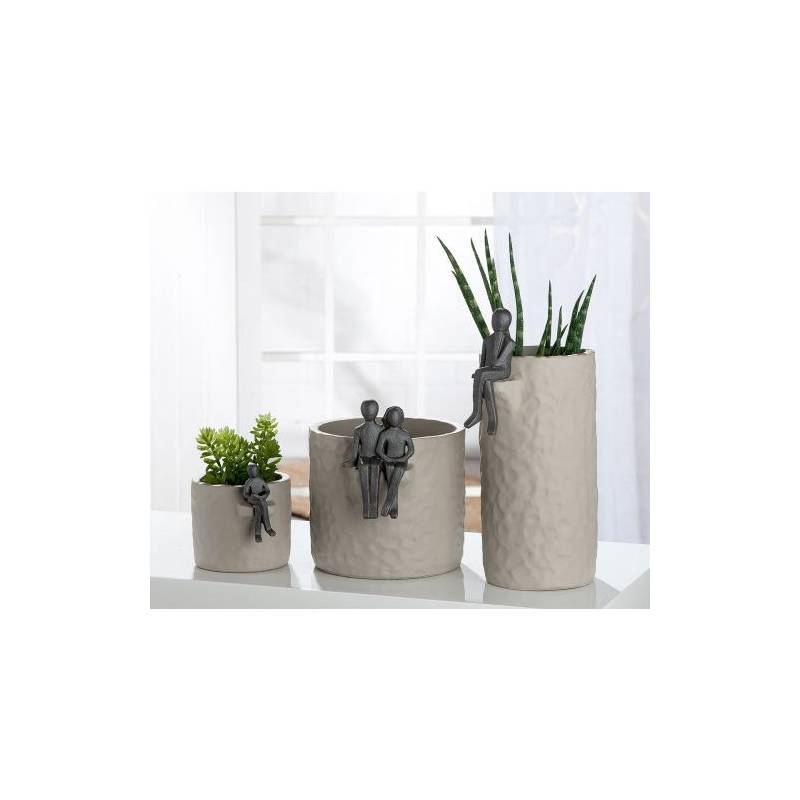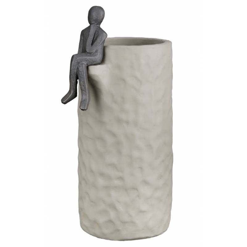 Vazonas FIGURA – tai ne tik augalų indas, bet ir išskirtinis meninis objektas. Pagamintas iš tvirto cemento, šis aukštas vazonas pasižymi minimalistiniu, bet kartu išraiškingu dizainu. Pilkas atspalvis dera su įvairiais interjero stiliais, o ant krašto sėdinti susimąsčiusi žmogaus figūrėlė suteikia jam simbolikos ir estetikos.
