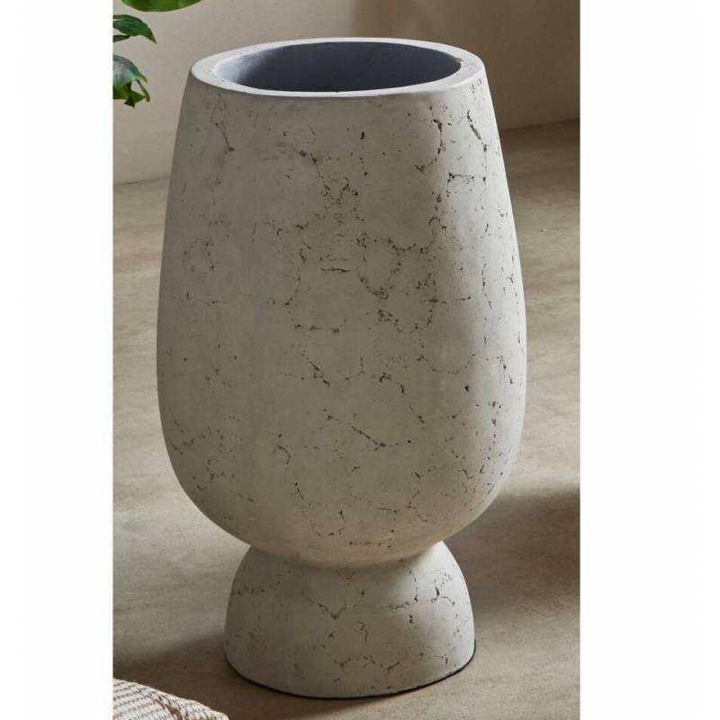 Pilkos spalvos vazonas su akmens tekstūros paviršiumi, modernus ir tvirtas dekoras 60 cm.