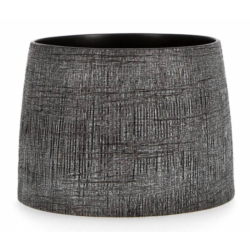 Keraminis vazonas PAPYRUS, tamsiai pilkos spalvos su vidiniu vandeniui atspariu sluoksniu – stilinga ir praktiška detalė.