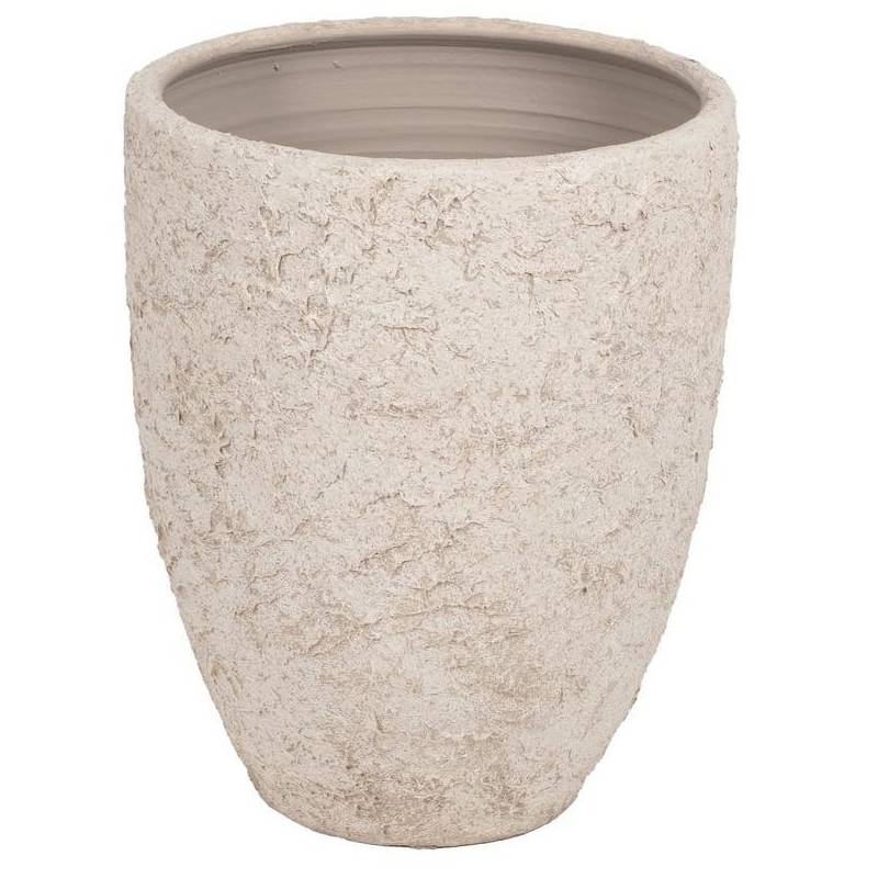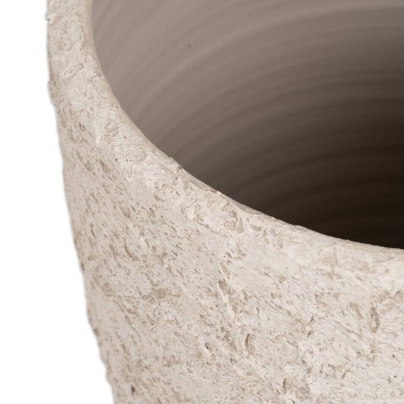 RUSTIC vazonas išsiskiria masyvia forma ir švelniai sendintu, rustic stiliaus paviršiumi, kuris suteikia erdvei natūralumo ir charakterio. Balta spalva leidžia lengvai derinti vazoną prie įvairių interjerų – nuo modernaus ir skandinaviško iki boho ar Viduržemio jūros stiliaus. Tai dekoratyvus elementas, kuris pabrėžia augalų grožį ir suteikia aplinkai vizualinės ramybės.