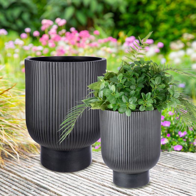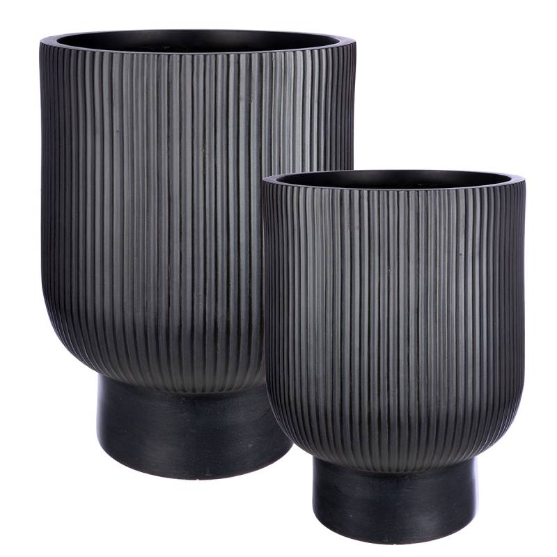 LINEA vazonų komplektas – tai dviejų skirtingų dydžių vazonai, išsiskiriantys minimalistiniu dizainu ir universalia juoda spalva. Švarios linijos ir subtili forma leidžia šiuos vazonus lengvai pritaikyti tiek moderniuose, tiek industrinio stiliaus interjeruose ar eksterjeruose.