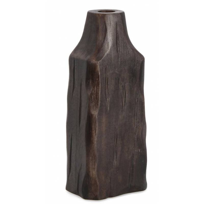 Dekoratyvinė vaza DUDHI, pagaminta iš mango medžio, rankų darbo, 26 cm aukščio, natūralaus rudo atspalvio.