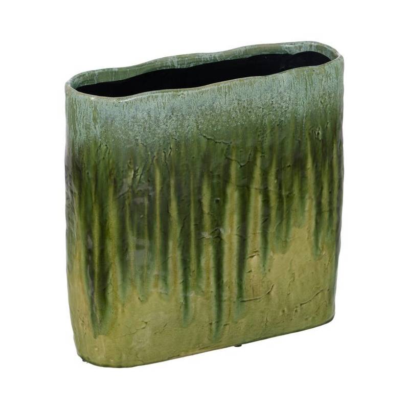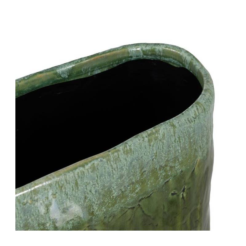 Didelė žalia keraminė vaza moderniam interjerui. Išraiškinga forma ir sodri spalva paverčia ją stilingu dekoratyviniu akcentu. 43 × 16 × 41.5 cm.