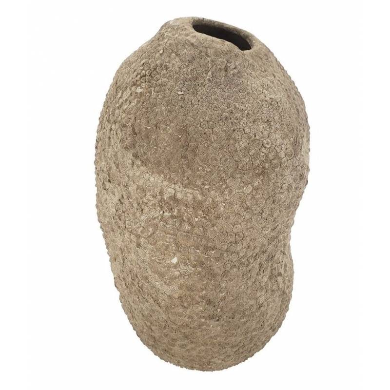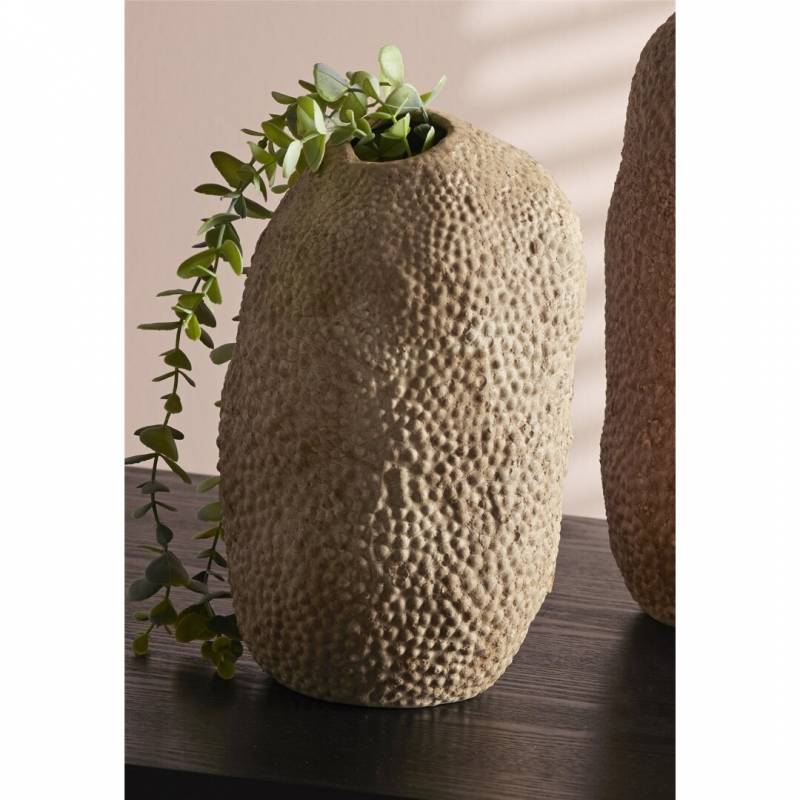 Natūralios spalvos keraminė vaza su granuliuota tekstūra, aukštis 28 cm.