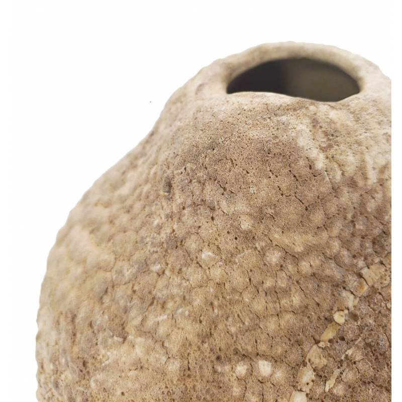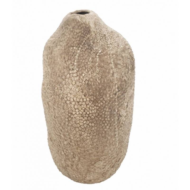 Natūralios spalvos keraminė vaza su granuliuota tekstūra, aukštis 37 cm.