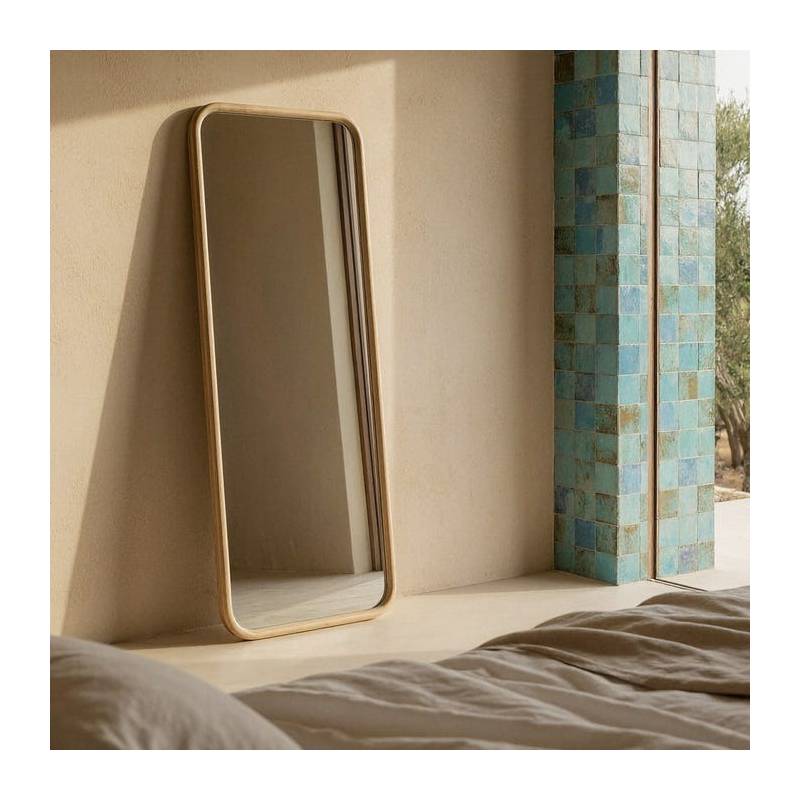 WAY veidrodis išsiskiria elegantišku, natūralaus medžio rėmu, kuris į interjerą įneša šilumos ir jaukumo. Dėl savo dydžio ir švarios formos jis puikiai tinka prieškambariui, miegamajam ar svetainei, vizualiai praplečiant erdvę ir sustiprinant natūralios šviesos pojūtį.