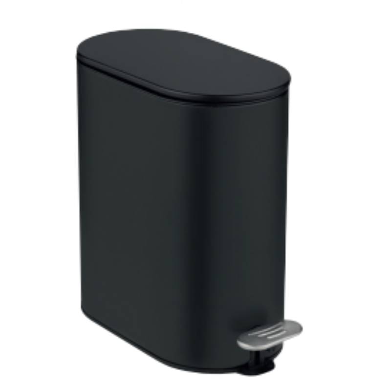 Kompaktiška matinė šiukšlių dėžė su tyliai užsidarančiu dangčiu, puikiai tinkanti mažoms erdvėms ir moderniam vonios kambariui.