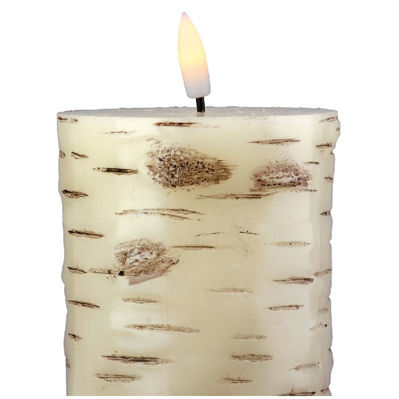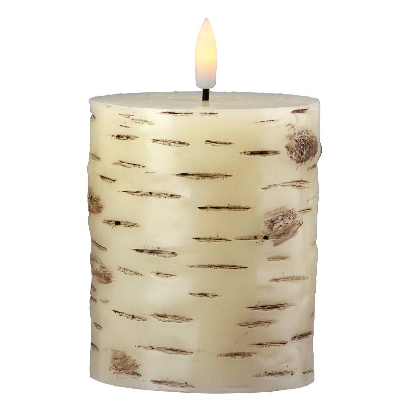 LED žvakė BIRKE – balta vaško žvakė su medžio žievės detalėmis. Šilta šviesa be liepsnos, veikia su 2xAA baterijomis.